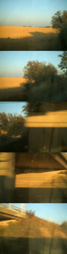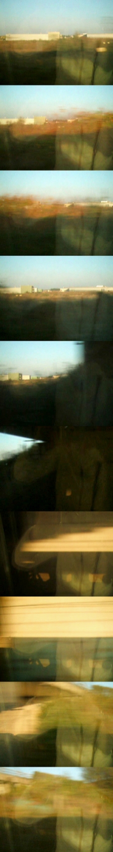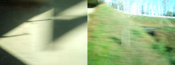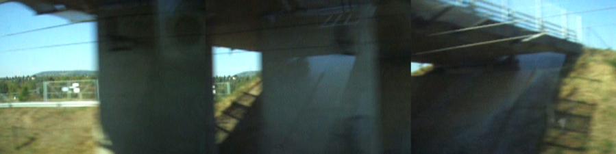 The film images in the Transition and Formation series show sequences of tunnel passages or underpasses on the Nimes-Paris-Nimes railroad line. In Transition, the film images are arranged horizontally. We can follow the temporal sequence by gliding our gaze along them. ...In Western culture, the spatial concept of time is usually a horizontal line or arrow- head moving from left to right. We imagine a narrative unfolding in this direction. Events are perceived as happening in a left-to-right movement...Siri Hustvedt, Remembering in Art: The Horizontal and the Vertical In contrast, I have arranged the film images of Formation vertically (they correspond to the number of images taken in one or half a second, (10 per second). In the vertical arrangement past and present are one and can appear to us in the form of columns. ...Vertical time is not associated with self-conscious reflection or any Cartesian notion of the spiritual, but with a time of embodied animal being, a pre-personal, pre-conceptual, pre-reflective time,that is common to humans and mice... Siri Hustvedt. see above